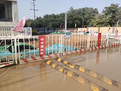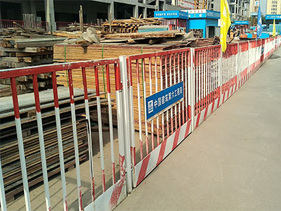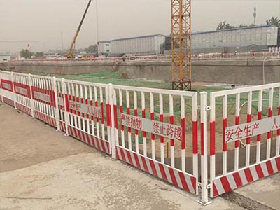 開挖深度超過2m的基坑周邊必須安裝防護欄?;臃雷o網(wǎng)安裝方便,可重復使用。開挖深度超過2m的基坑周邊必須安裝防護欄桿。